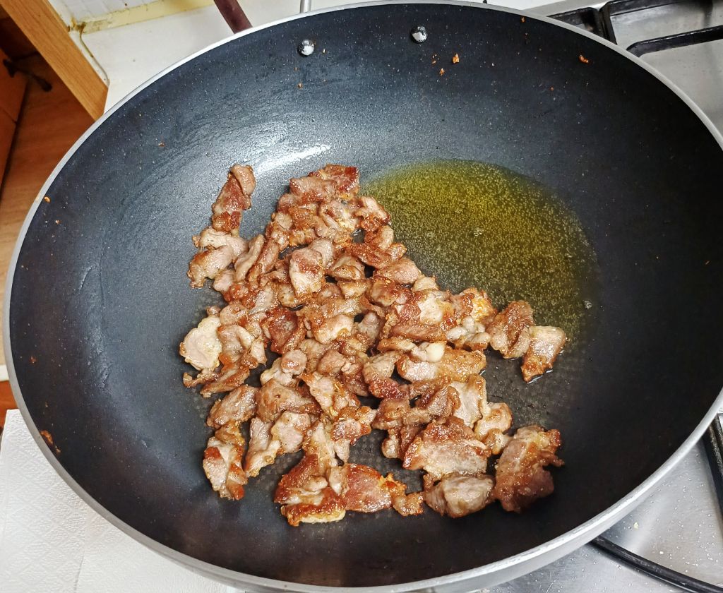 볶다 보면 기름이 이만큼 나옵니다