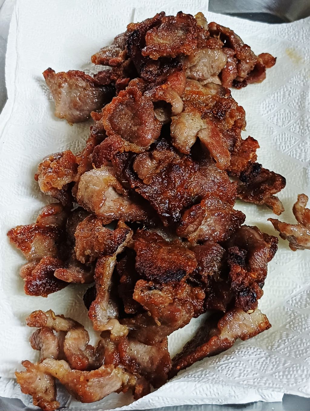 고기를 건져놓고 (탄 느낌이 ) 사진이 그렇게 나왔어요