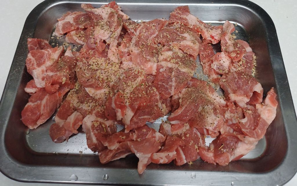 사선뜨기 해서 앏게 썰어서 허브솔트 송로소금 후추 뿌려 믿간을 합니다