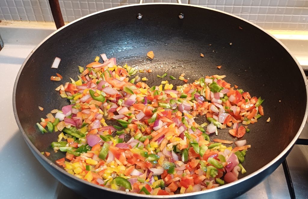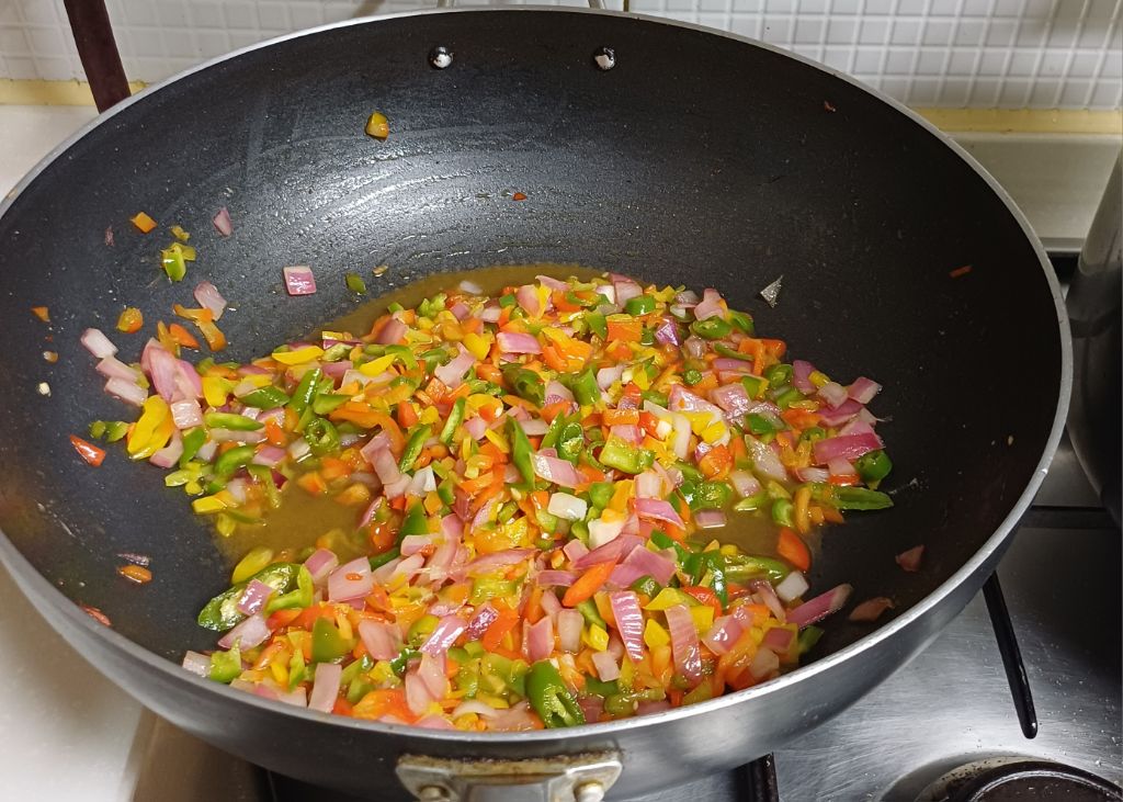 파프리카 넣고 볶으면서 굴소스 1 간장 1 설탕 1 넣고 볶다 마지막 식초 한 스푼 넣고 볶아줍니다