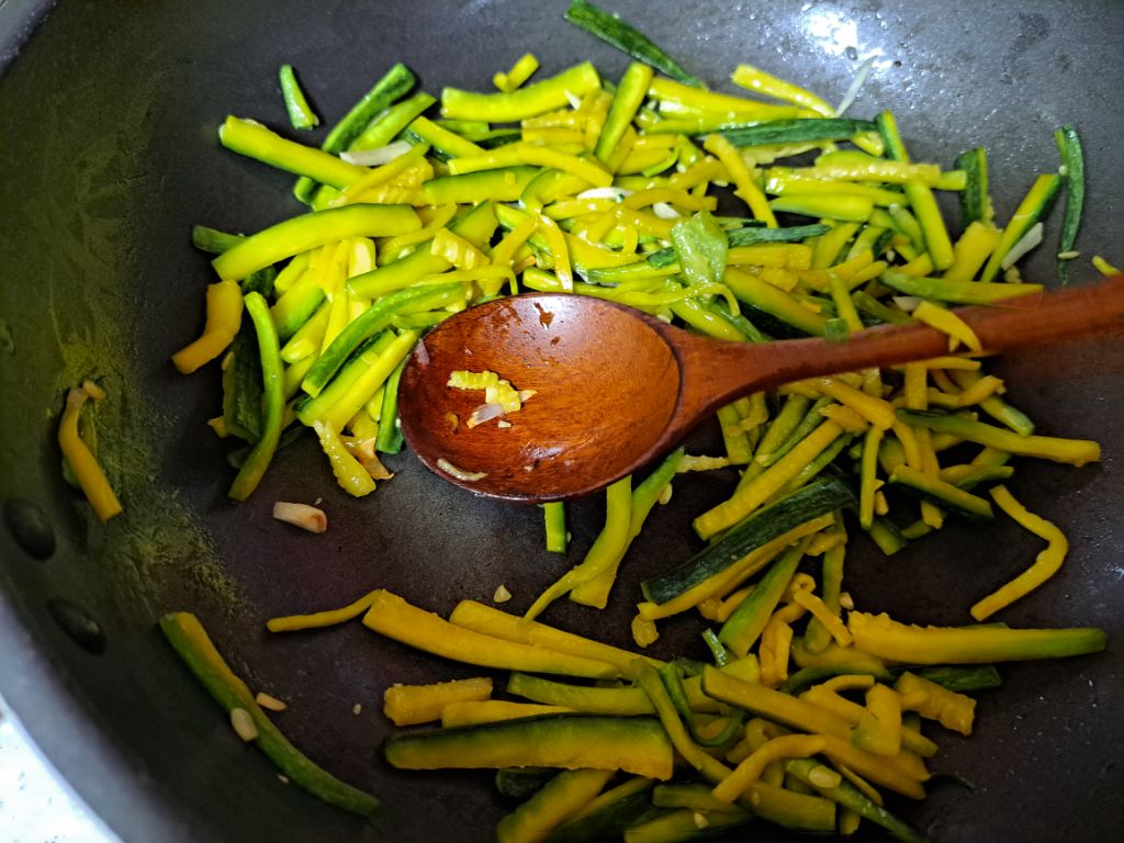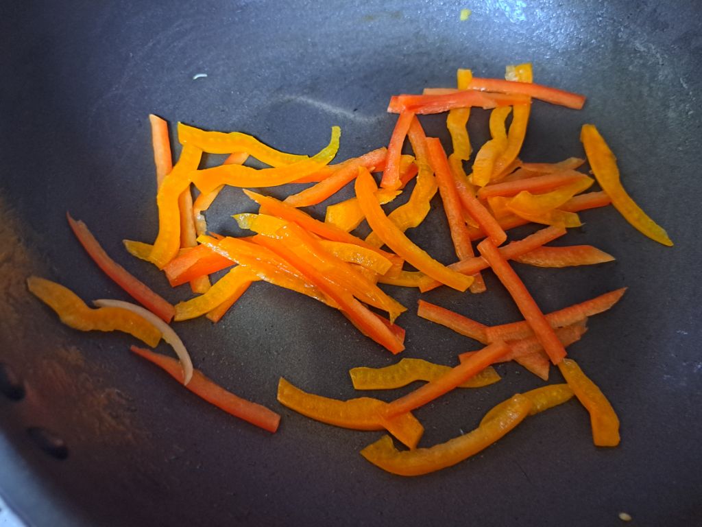 파프리카도 숨만 죽을만큼 살짝만 볶아줍니다.