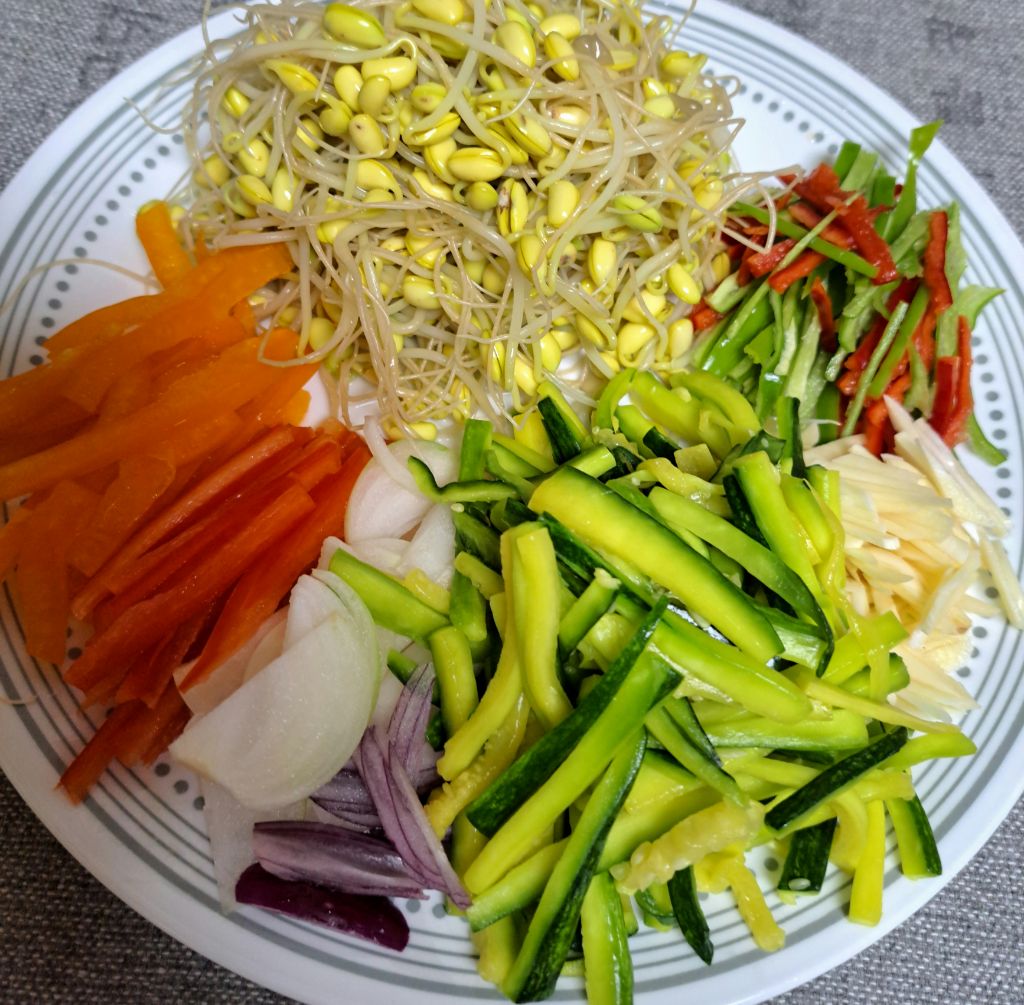 애호박 콩나물 연겨자 잡채 입니다