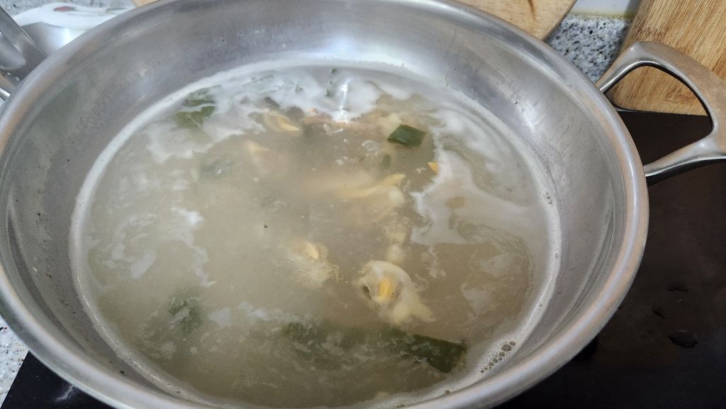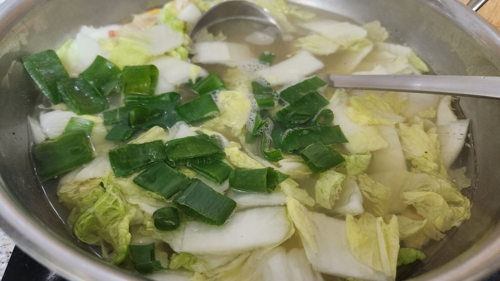 대파도 넣고 천일염으로 간을 맞추고 마늘도 넣어줍니다.