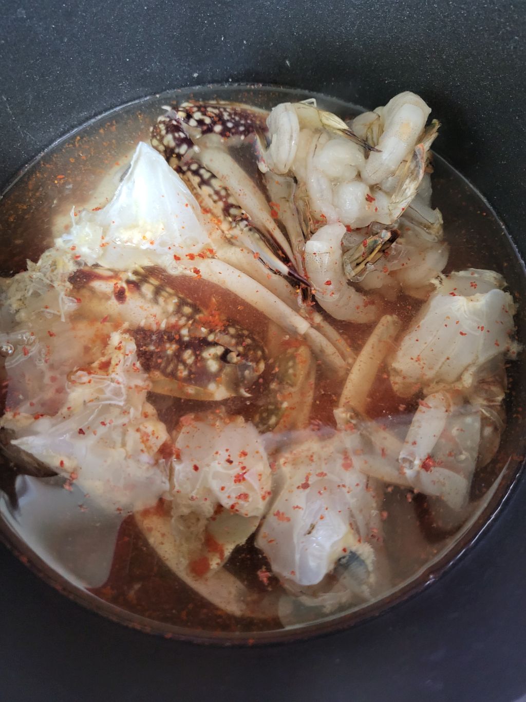 고추가루 조금넣고 끓이다 꽃게와