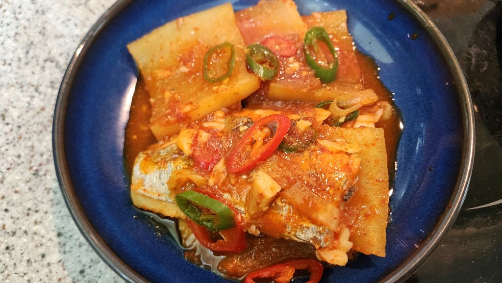 요즘 무가 맛있는 계절이라 무를 졸이고 싶은데 갈치를 얹어 졸였어요.
