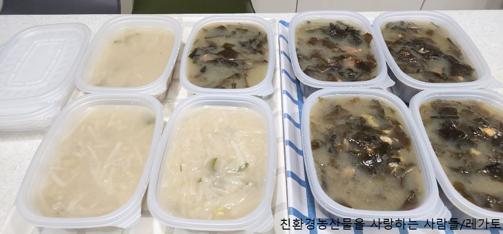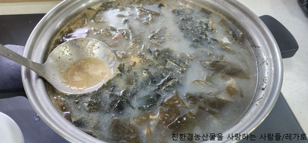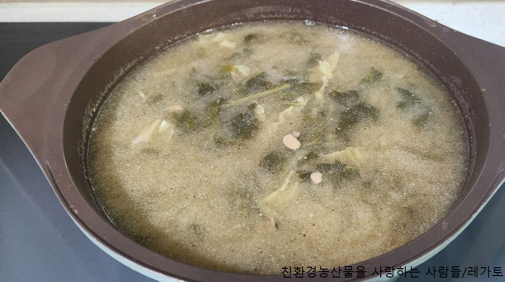 들깨가루 두 국자, 소금 넣어 간 맞추었어요.