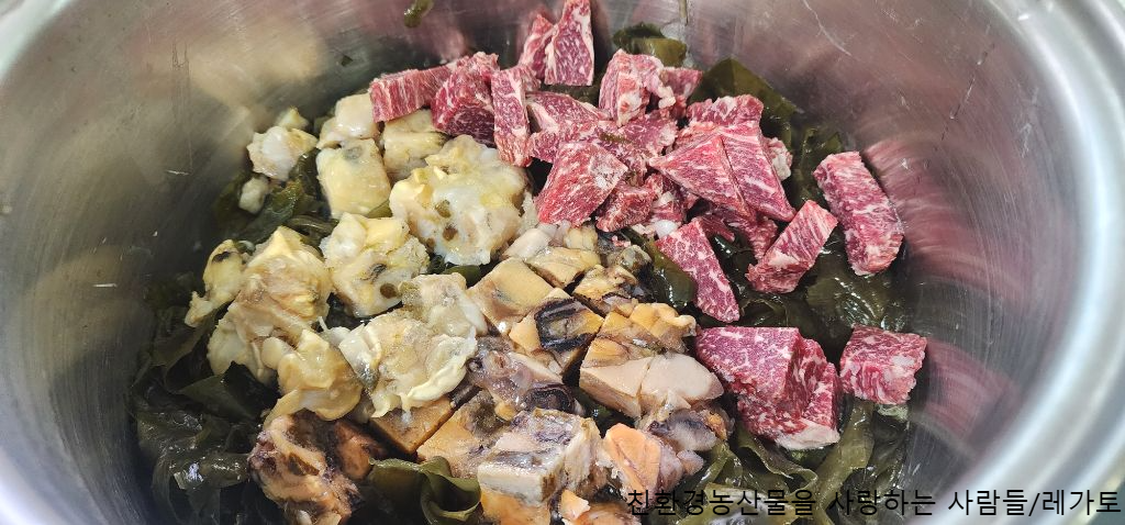 미역국 재료 : 미역, 홍합. 바지락. 소고기