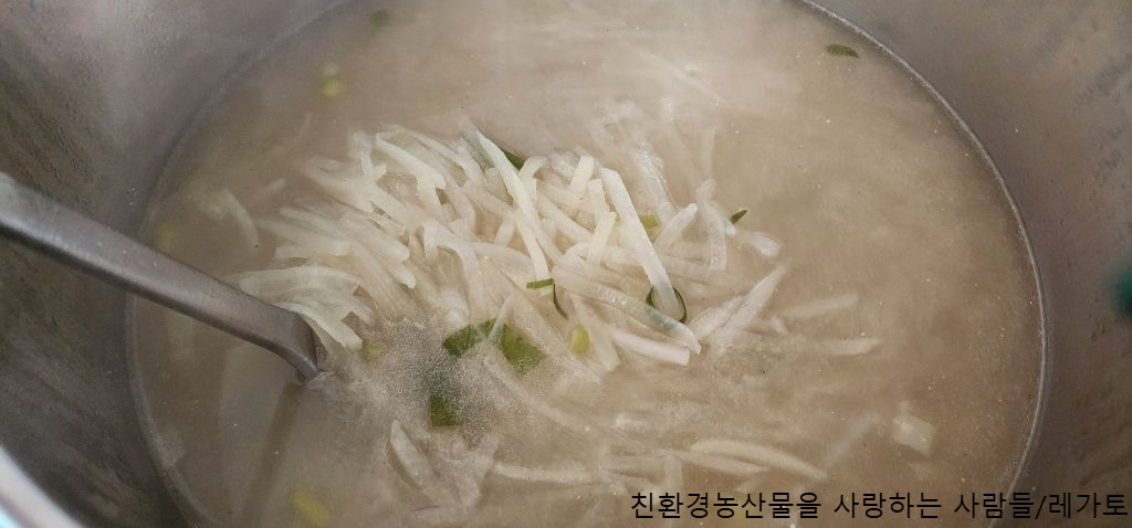 준비한 멸치 육수 넣어 팔팔 끓으면