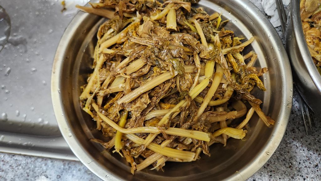 밖에 널어두었던 시래기를 걷어 2박3일을 삶아불렸어요.