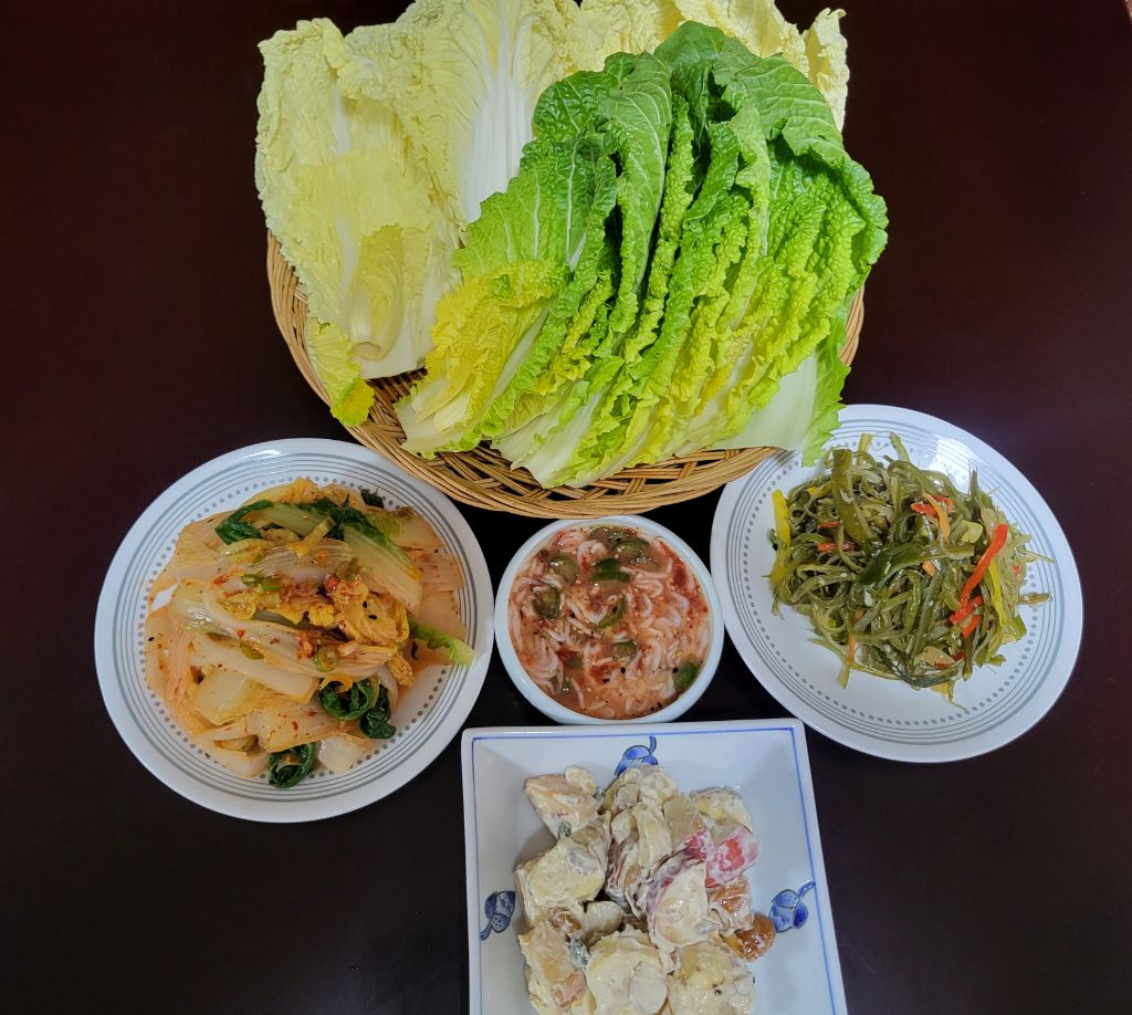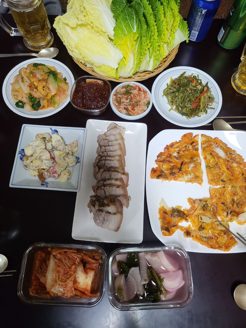 삼겹살 구우려다 수육삶아서 상에내고요.
