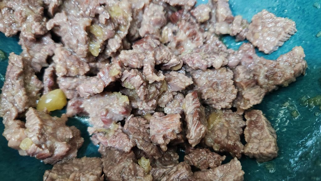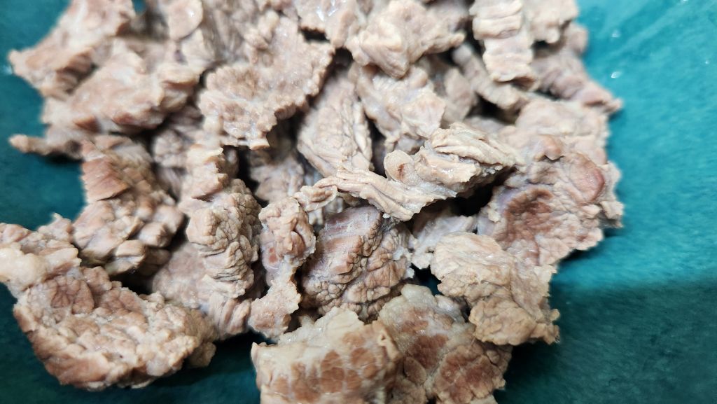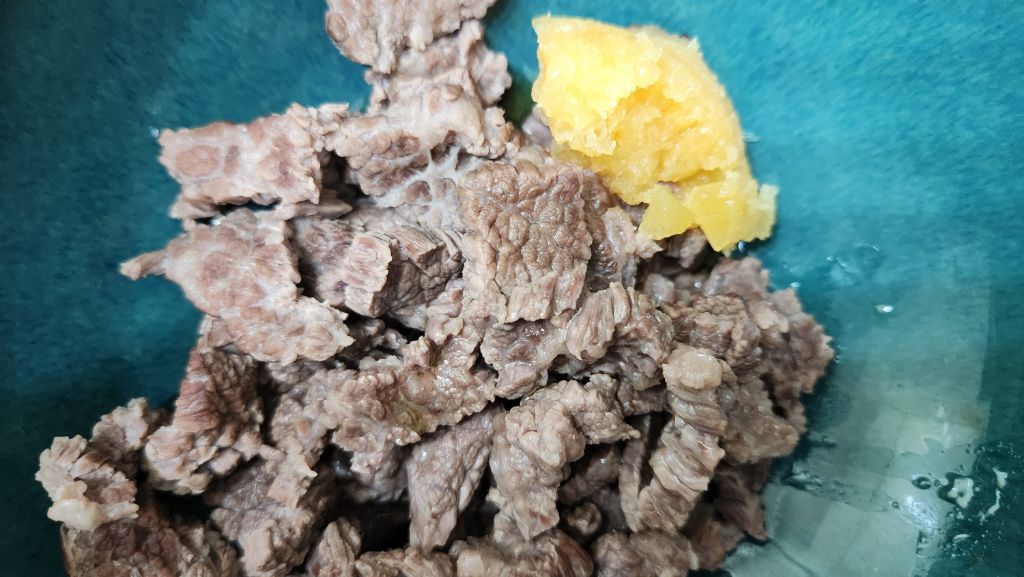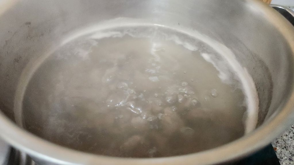 평상시엔 덩어리 고기를 사용하지만 오늘은 냉동실의 썰어 둔 양지를 냄비에 넣고 삶았어요.