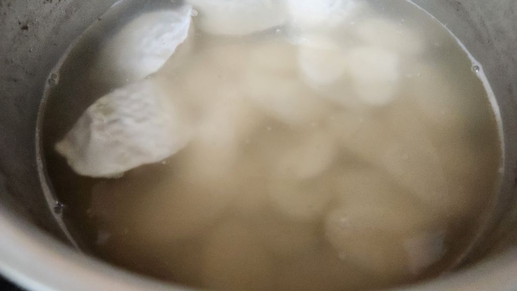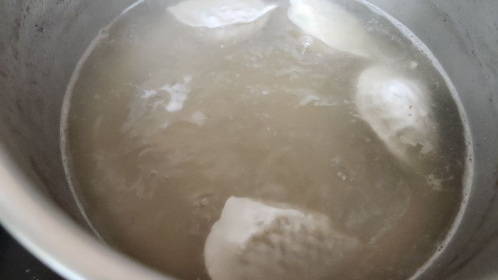 육수가 끓으면 냉동실의 만두부터 넣어 끓여요.