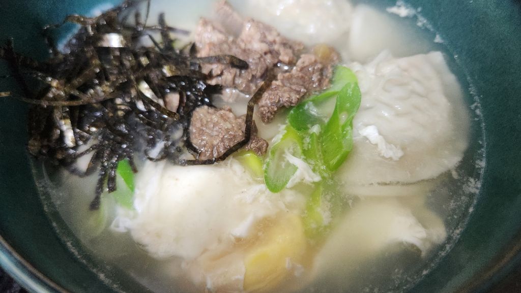 김을 올리면 물에 빠진 고기가 너무 맛있는 떡국이 완성됩니다. 보들보들한 레가토님의 떡살과