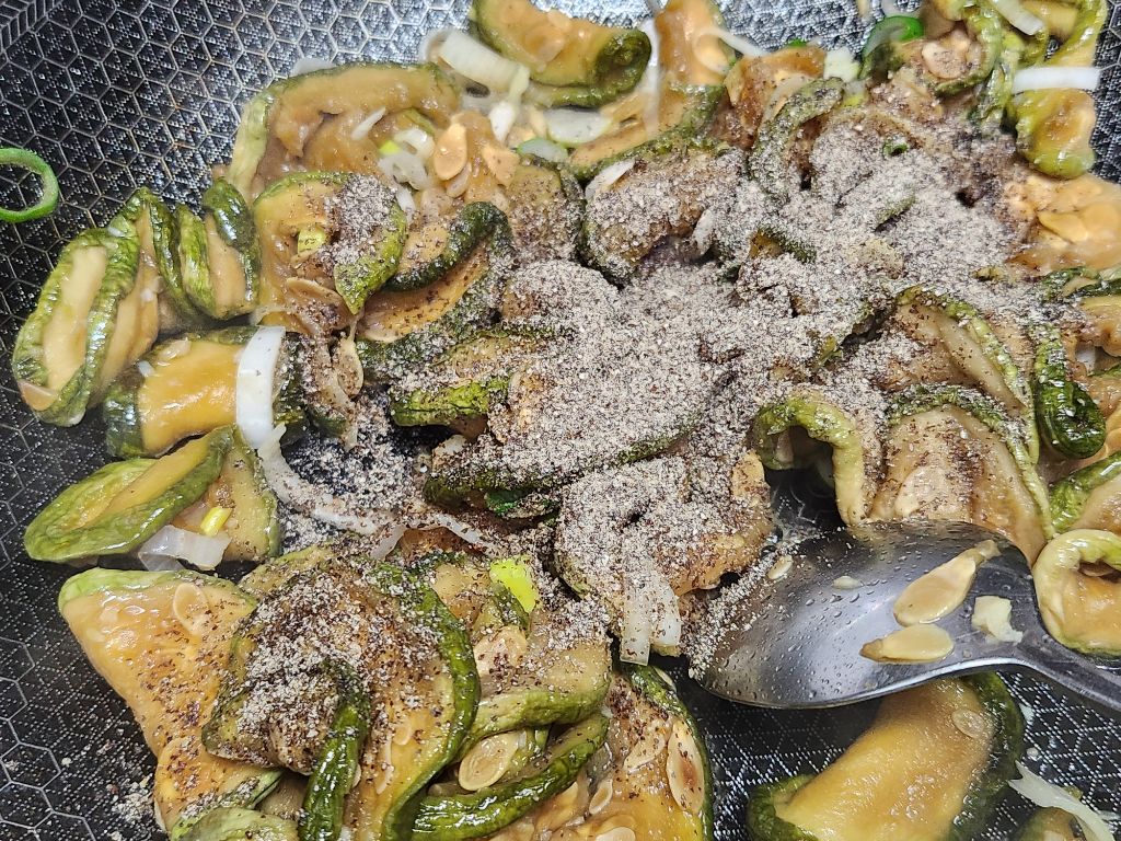 마지막에 대파 넣고 들깻가루 넣고 볶아줍니다.