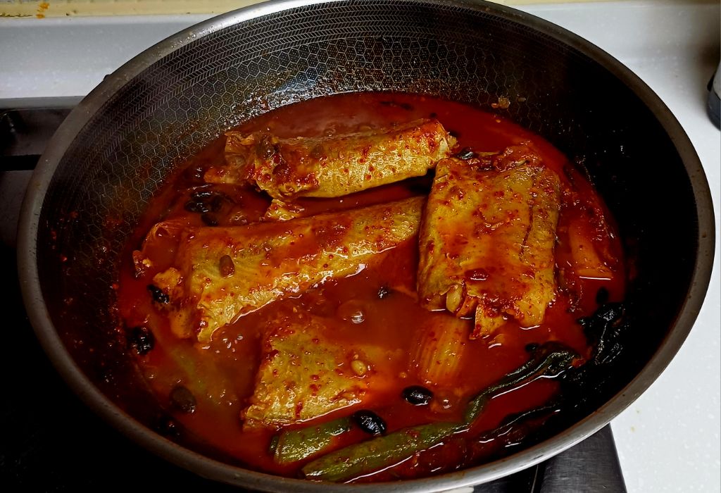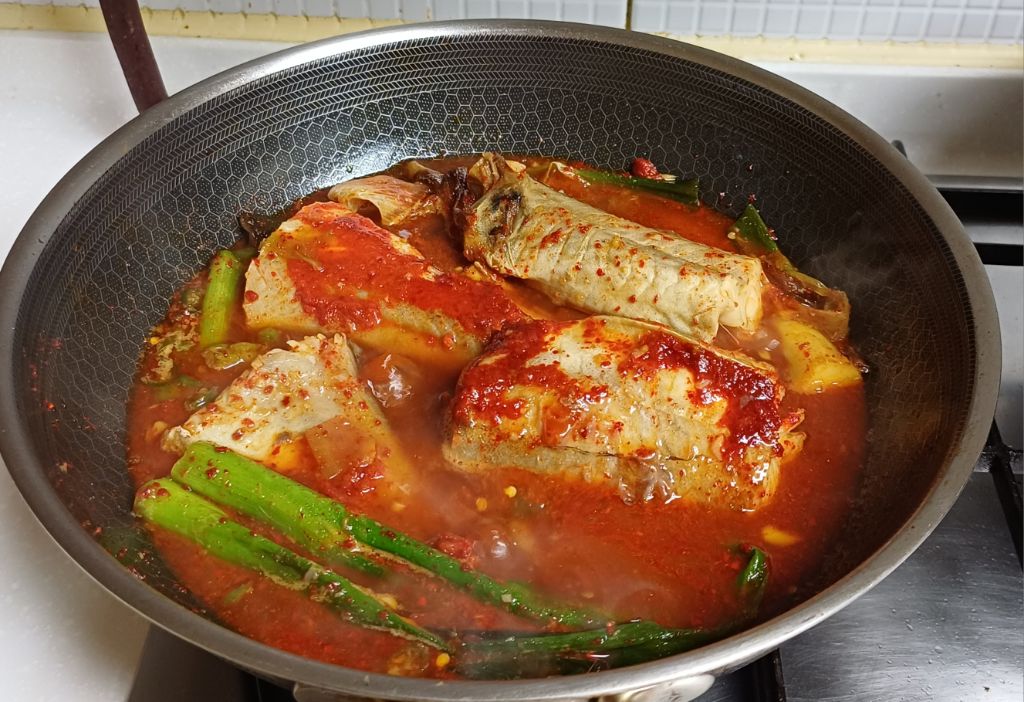 손질한 코다리 두 마리 넣어 굽듯이 뒤저거려요