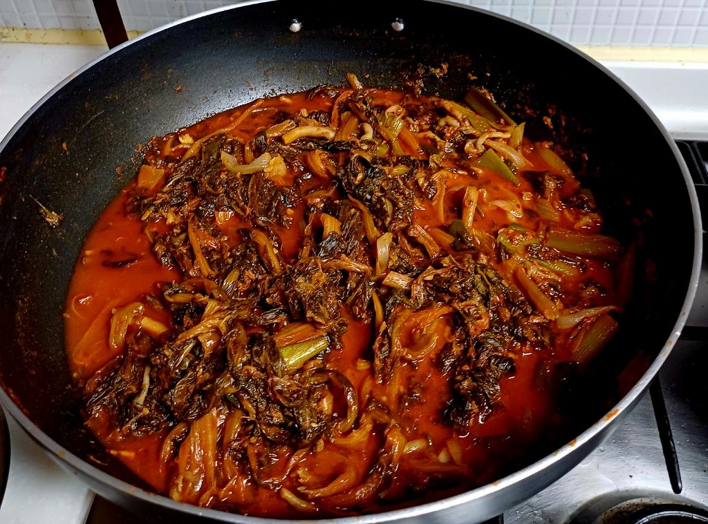 따로 볶아둔 시래기 조금 넣고 한번 더 조려줍니다