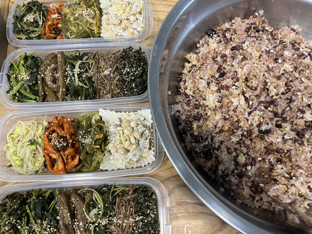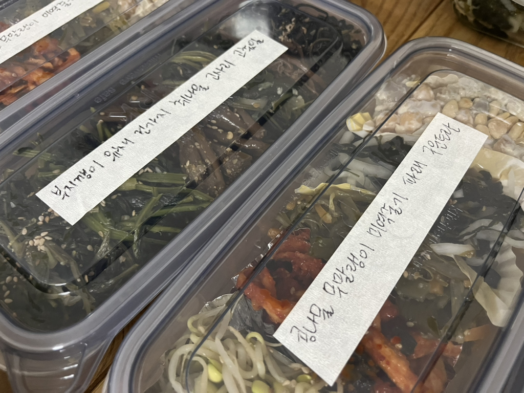 나눠먹으려고 나물 가지런히 담아 한컷