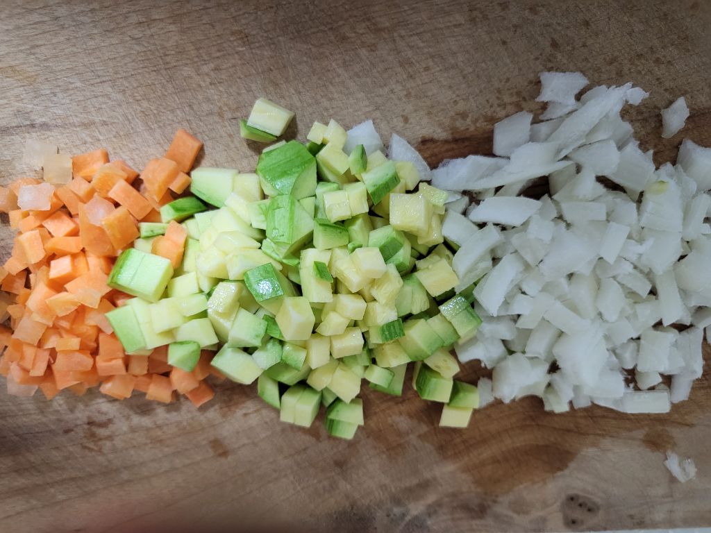 야채는 당근.양파.애호박 잘게 썰어놓고