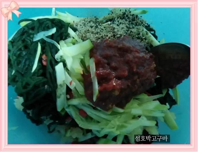 된장살짝 고추장살짝 다진마늘 오이 채썰구요 깨도넣구요