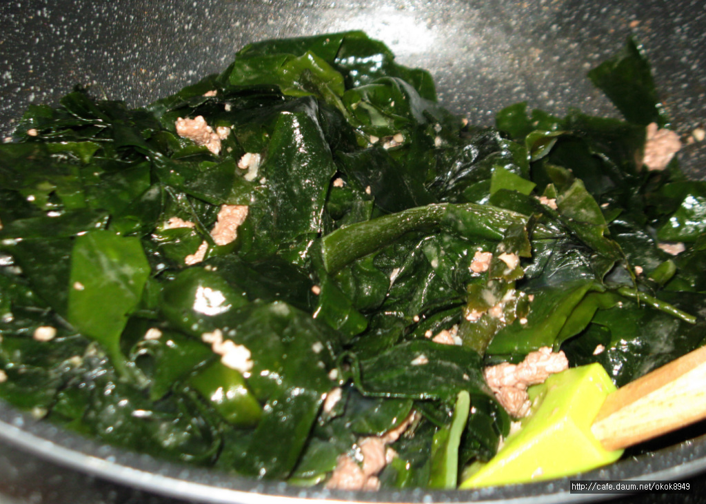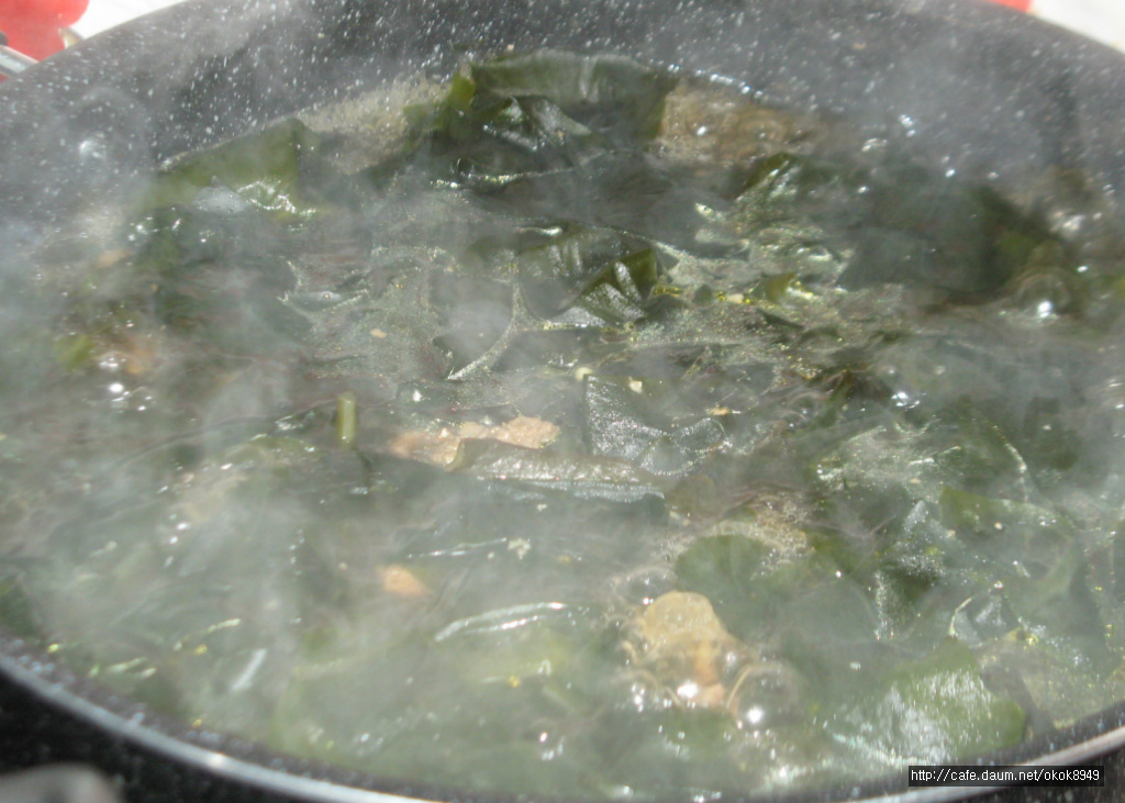 참기름 두르고 쇠고기 달달볶다가 미역넣고 미역국을 끓였답니다.