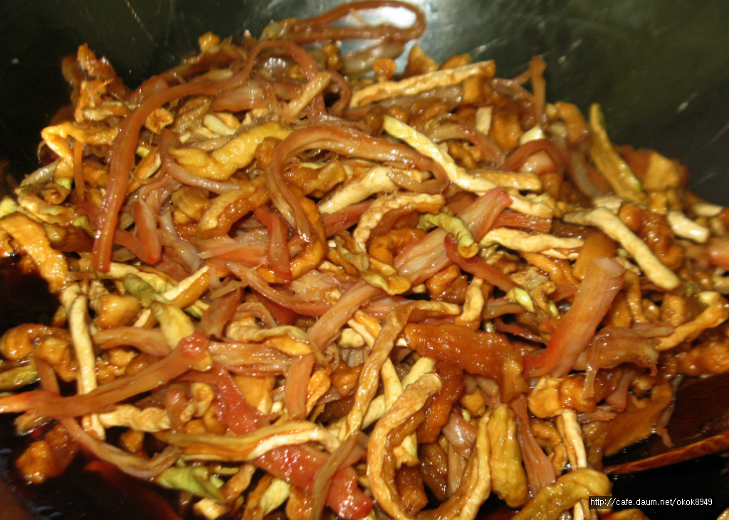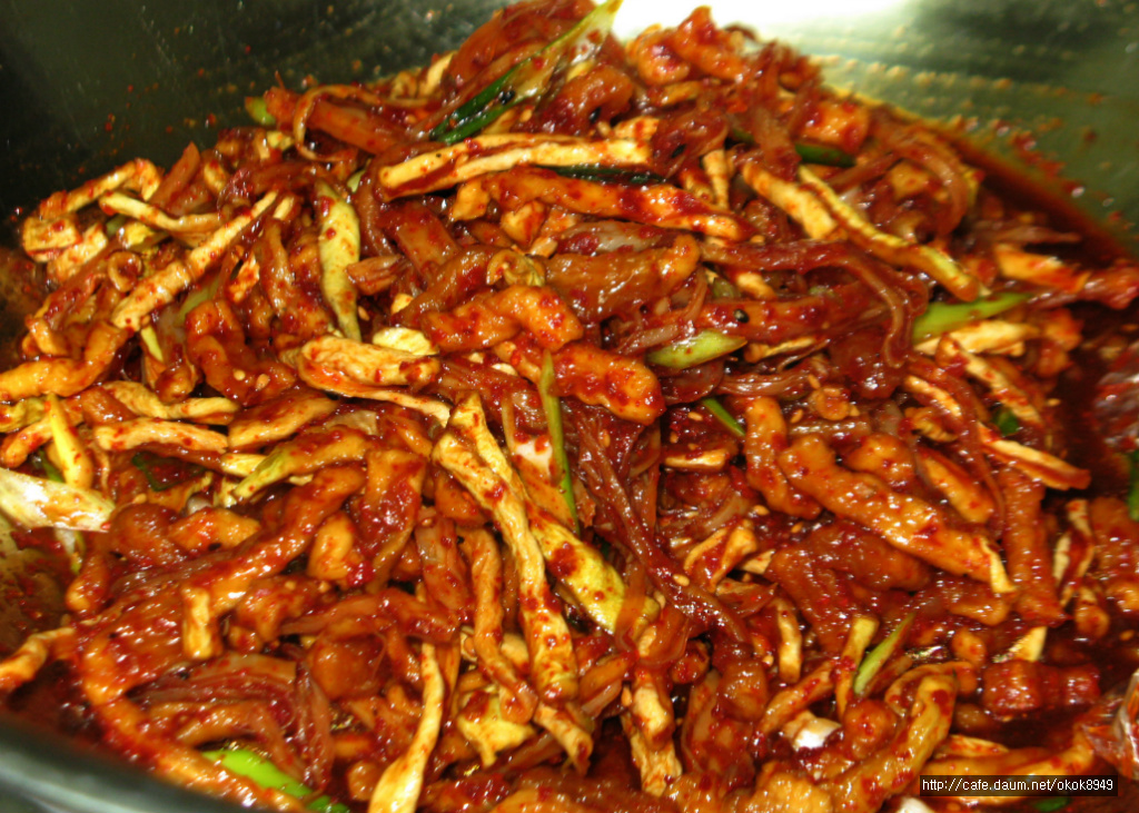 무우말랭이도 깨끗하게 헹구어서 진미포와함께 간장.육수.배청에 3시간정도 재워줍니다.