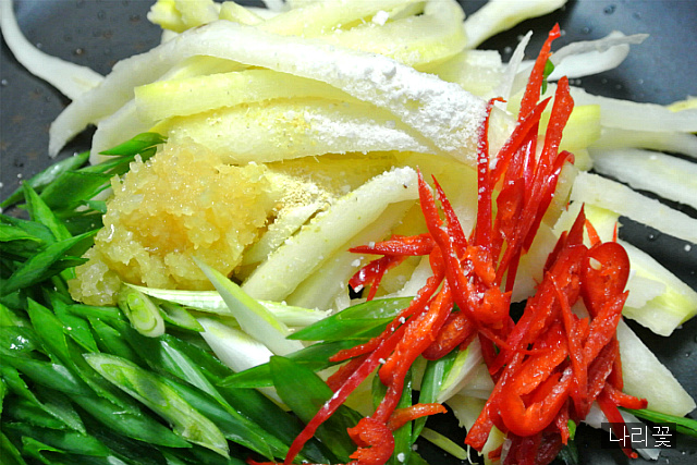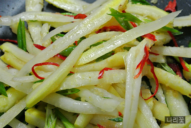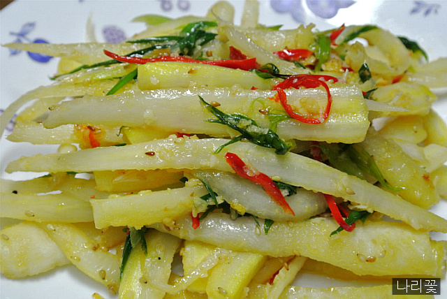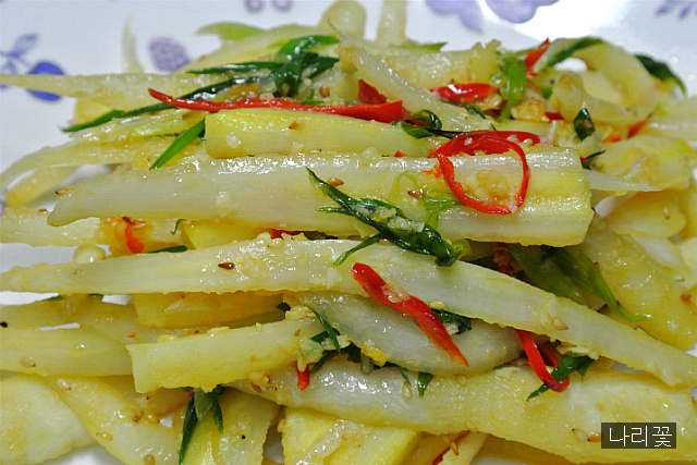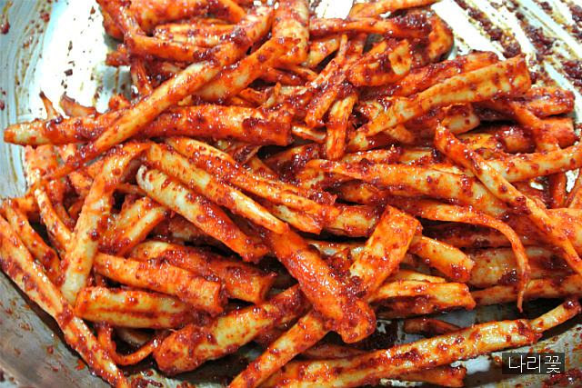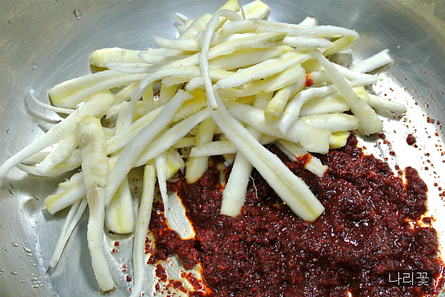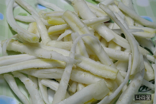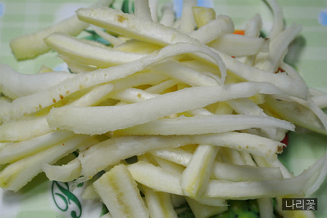 무침은 가는것 보다 좀 굵직하게 쪼개서 무쳐야 맛이 있어요