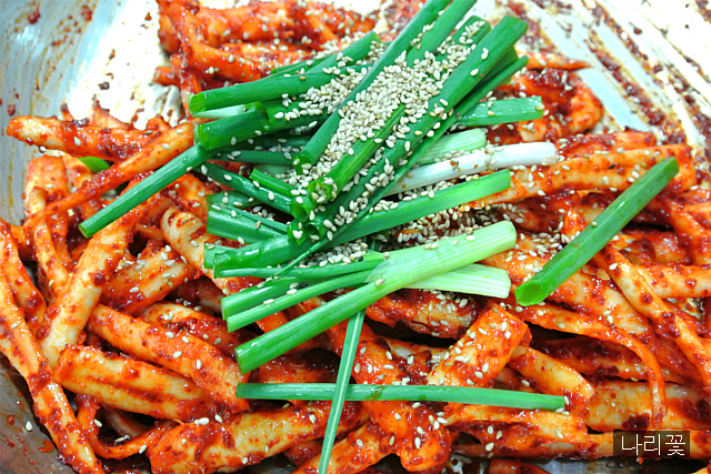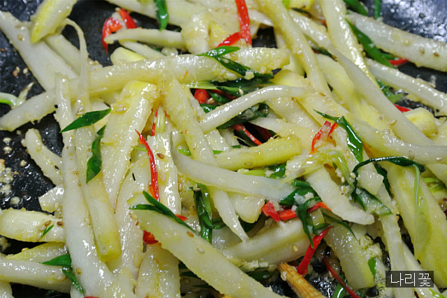 쪽파와 통깨를 넣고 무쳐주면 다 된것이에요