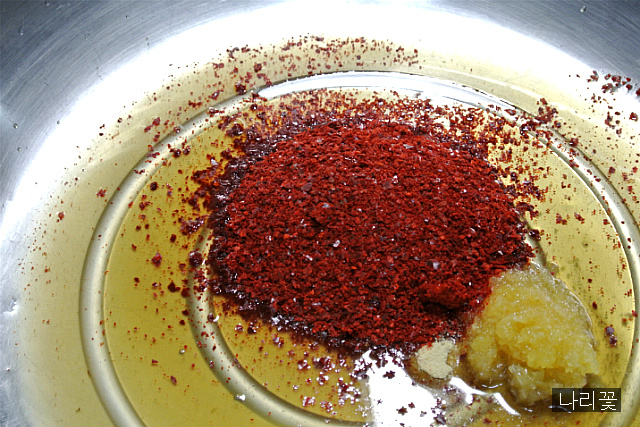 양푼에 액젓 고추가루 마늘 생강 매실액기스를 넣고 고루 섞은후