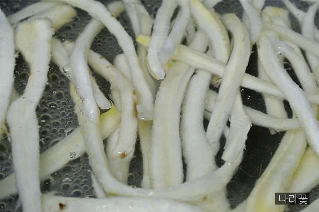 볶음은 도라지는 무침용 도라지보다 좀 가늘게 쪼개는것이 좋습니다