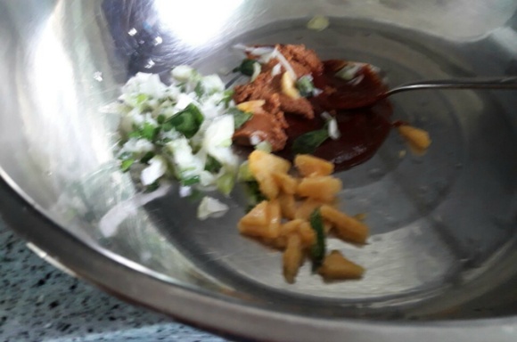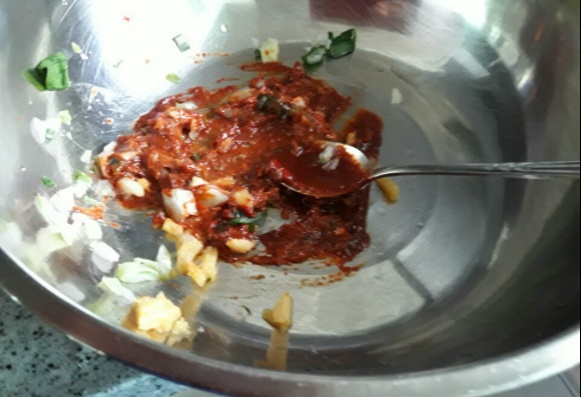 된장.고추장.살구청.파.마늘 넣고