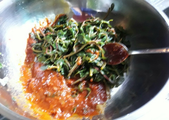 처음 시도해보는 쇠비름 나물 무침 입니다