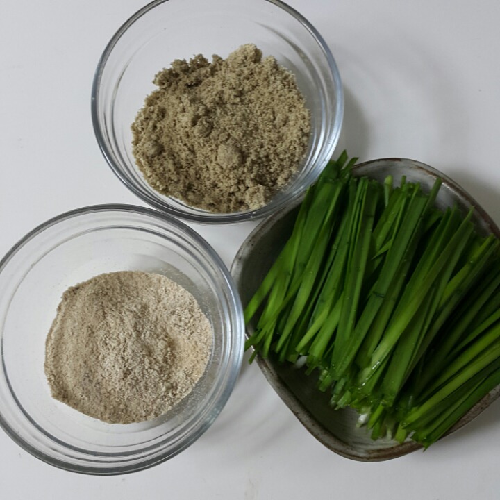 들깨 가루. 표고가루 . 부추~조선간장