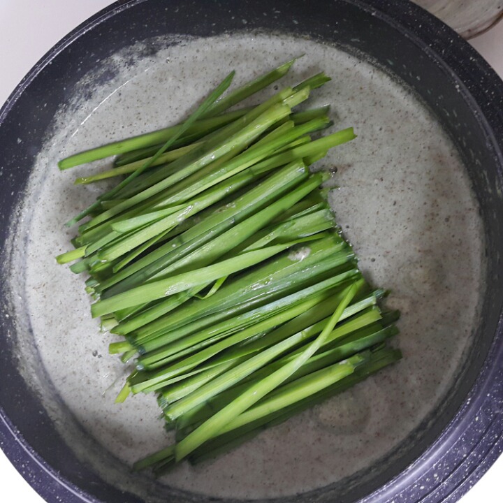 다슬기와 궁합이 맞는 부추만 넣어 휘 저어 주면 끝~♡