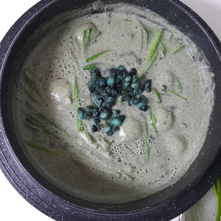 미역국에 들깨풀어 새알 서너개 넣고~