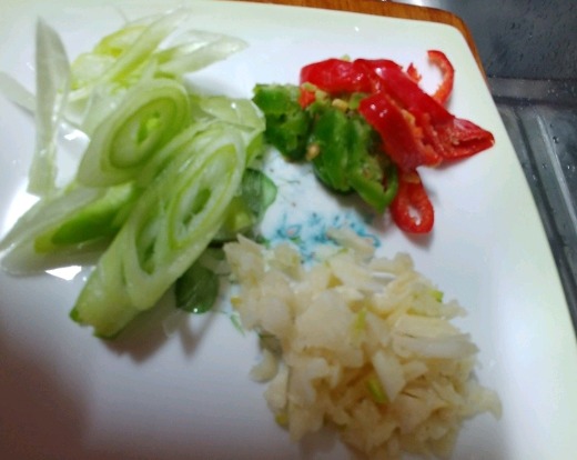 양념 : 고춧가루, 다진마늘, 파, 청. 홍고추, 소금