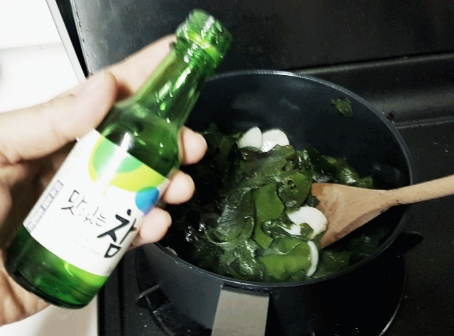 쌤플용 작은 소주하나 찾아서 한 수저 넣어 줍니다