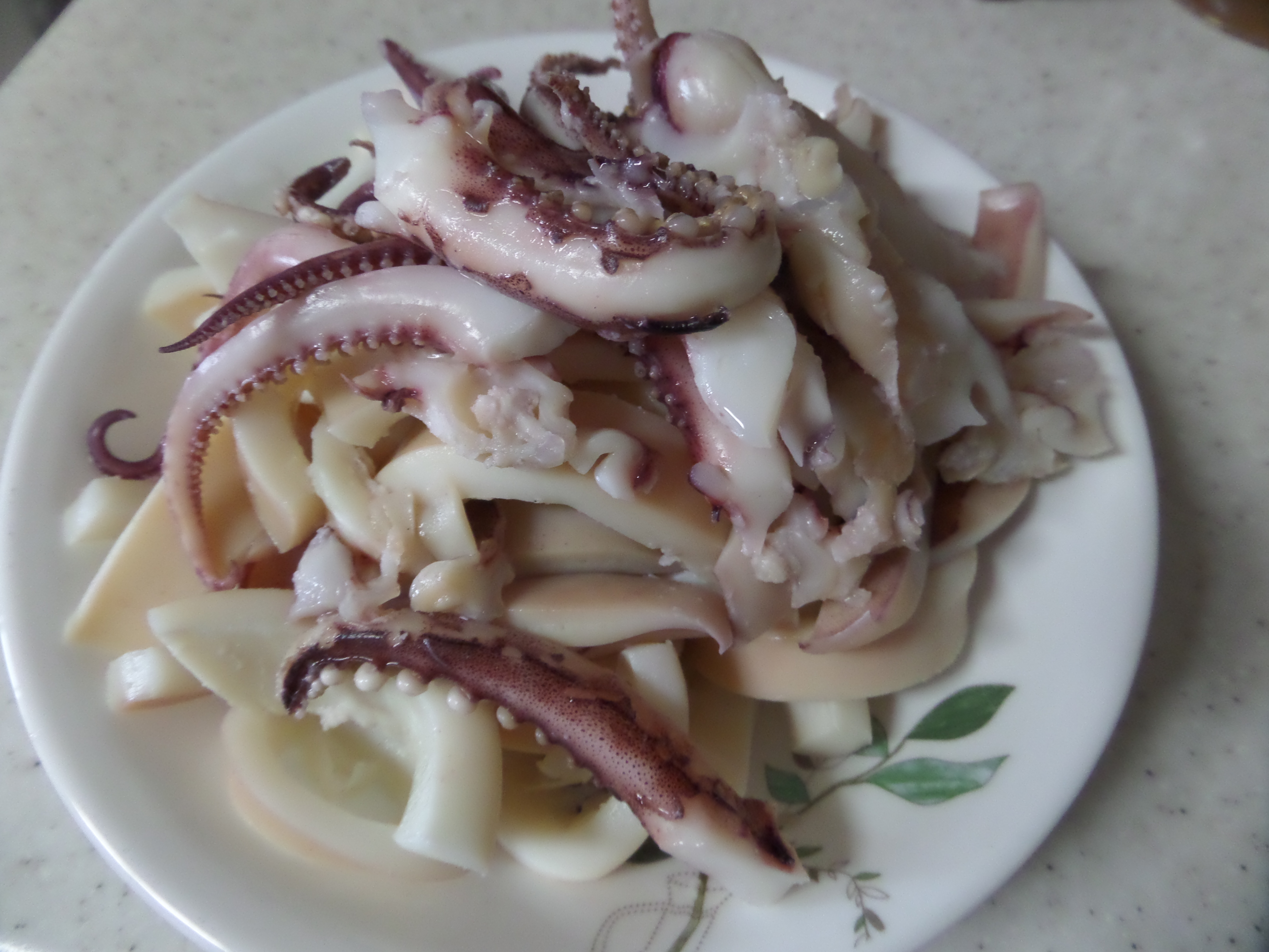 죽순 삶은 물에 오징어 두 마리 데쳐서 먹기 좋은 크기로 자르고요.