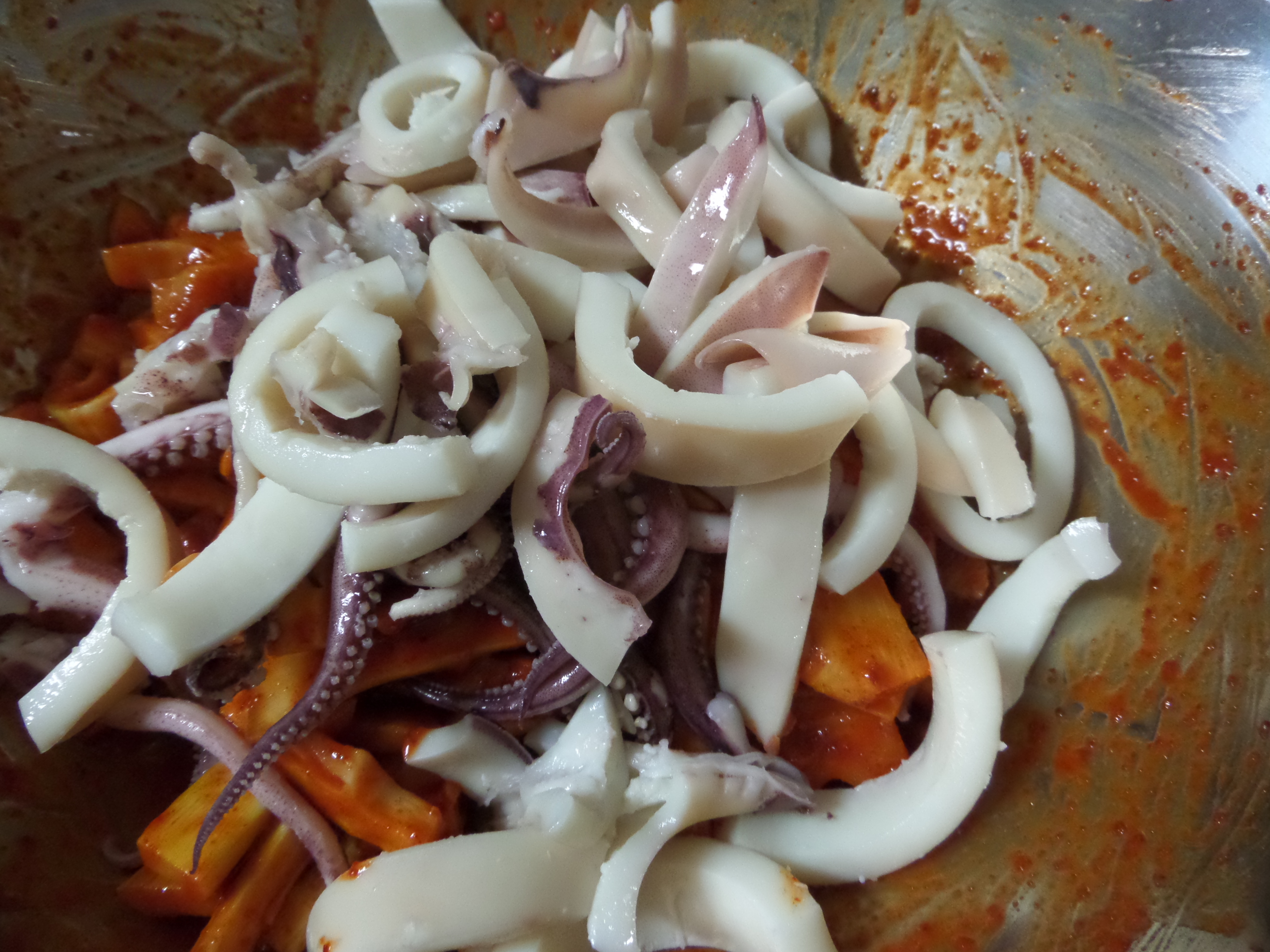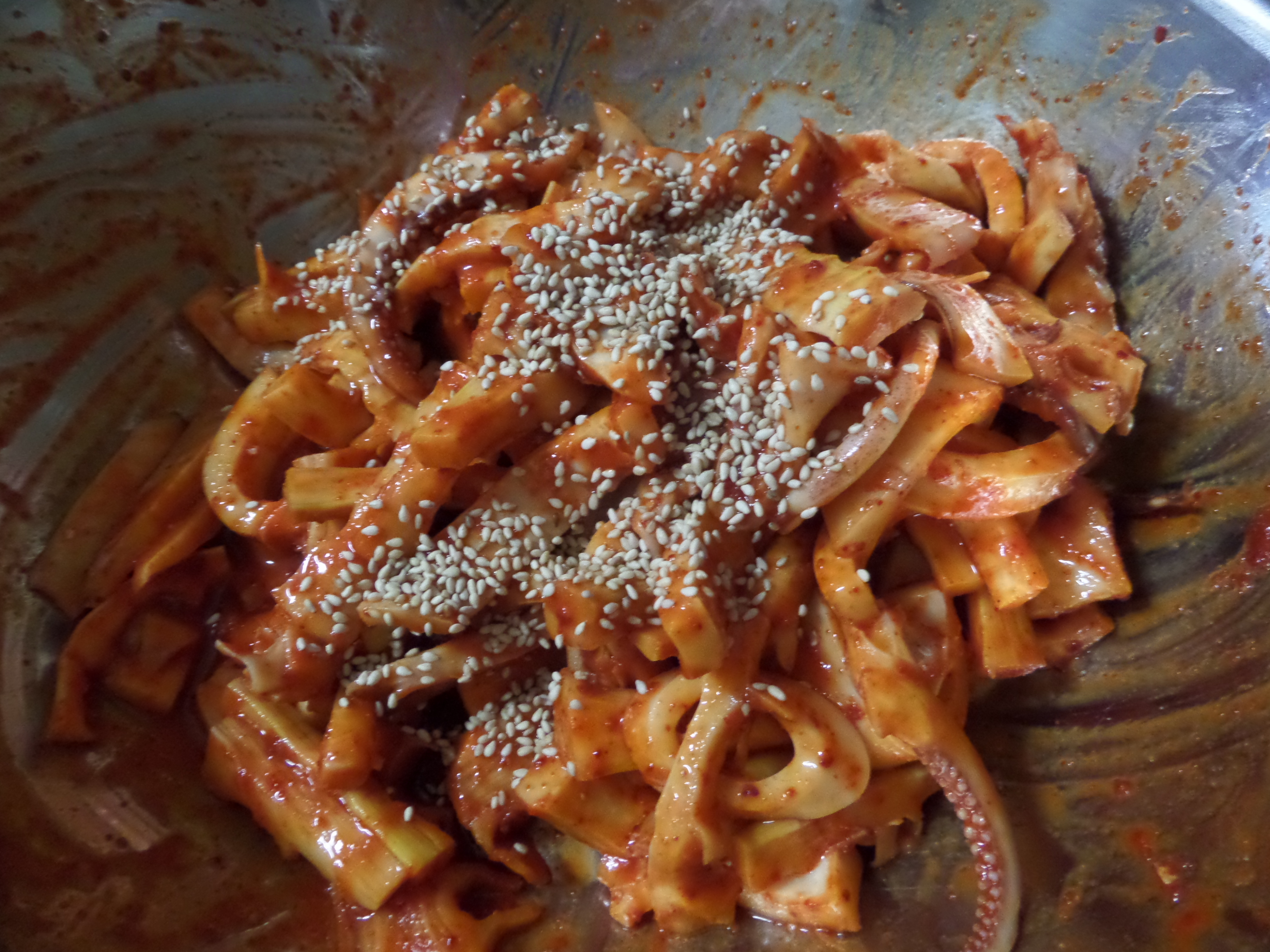 죽순무침에 오징어 넣고 살살 버무려주면 됩니다.