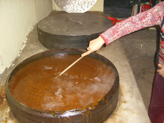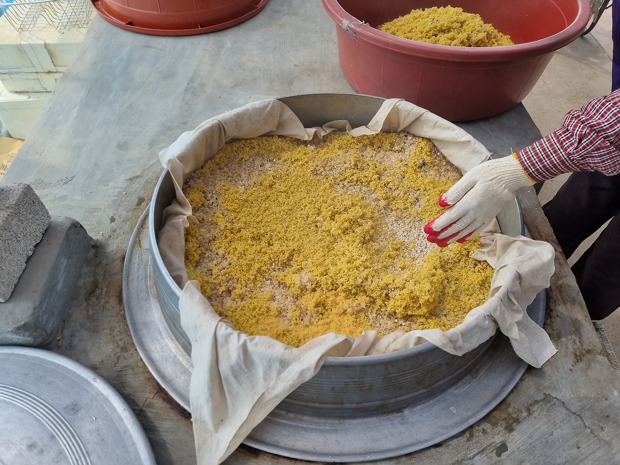 고두밥을 만들어서 엿기름으로 삭혀서 자루에 넣고 짜서