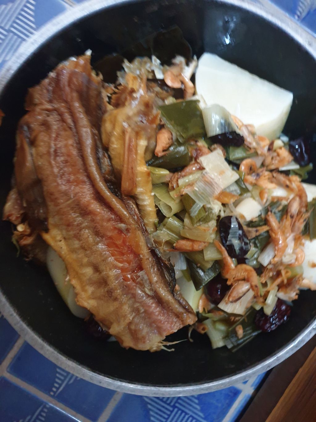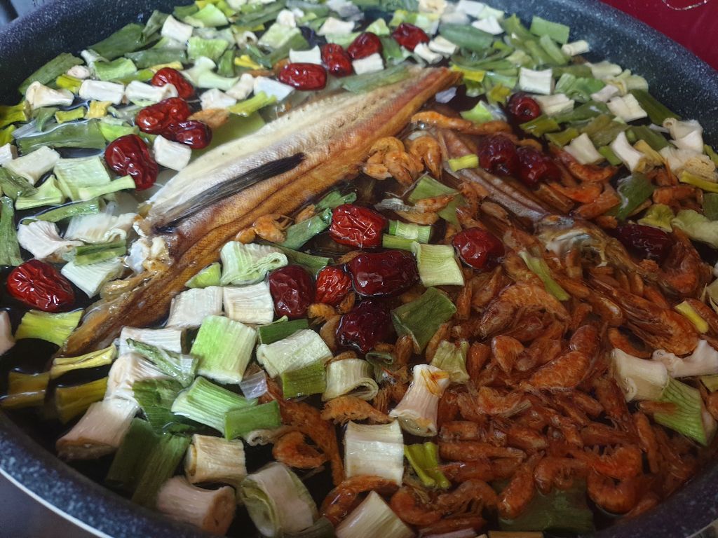 북어 3마리 대파.건새우.양파.무우.배추