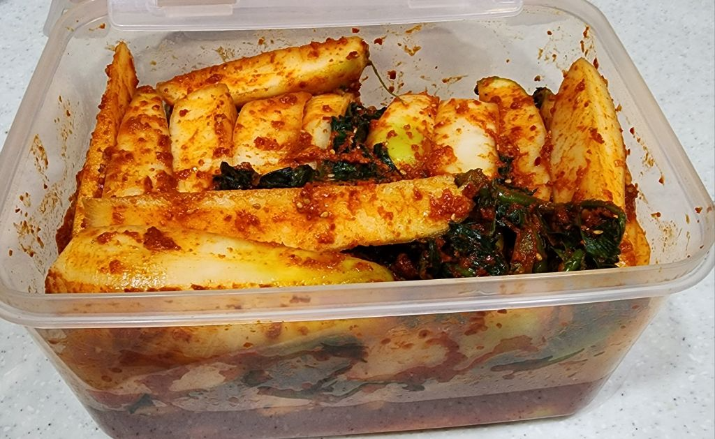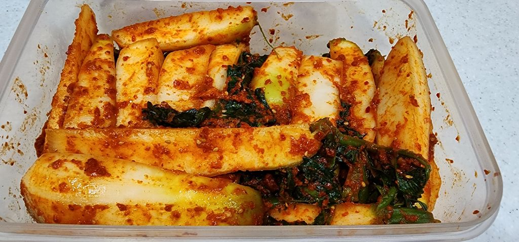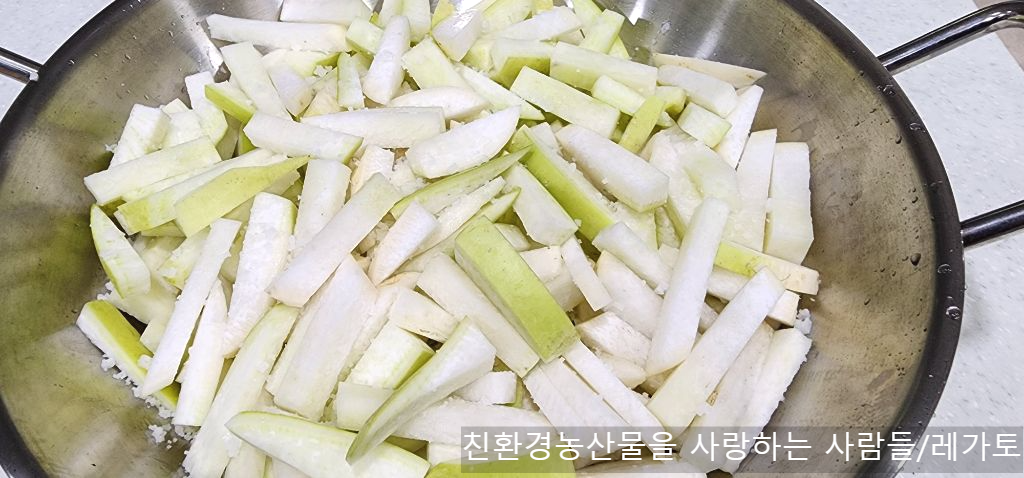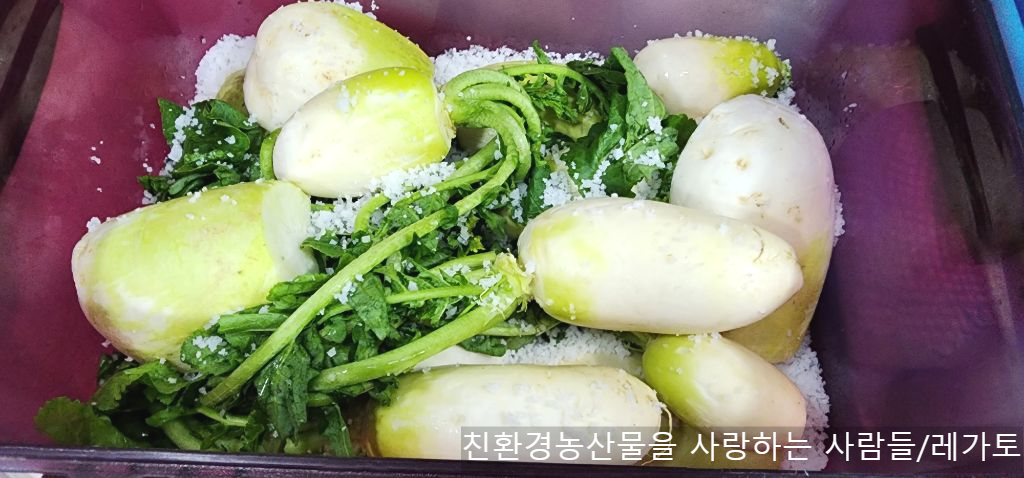 김치통에 절여둔 무가 다음날 물이 조금 생겨 숨이 죽었어요.