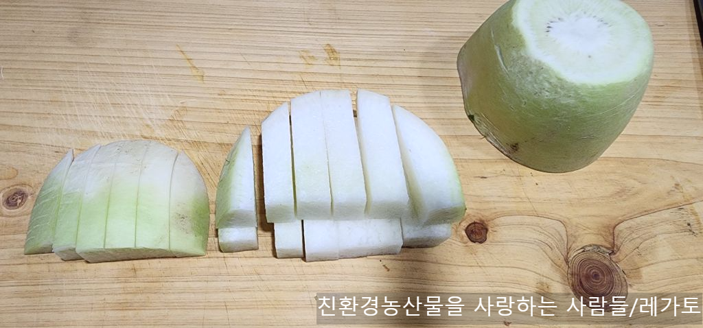 나박김치 식으로 잘라 담아 요즘 잘 먹고 있답니다.