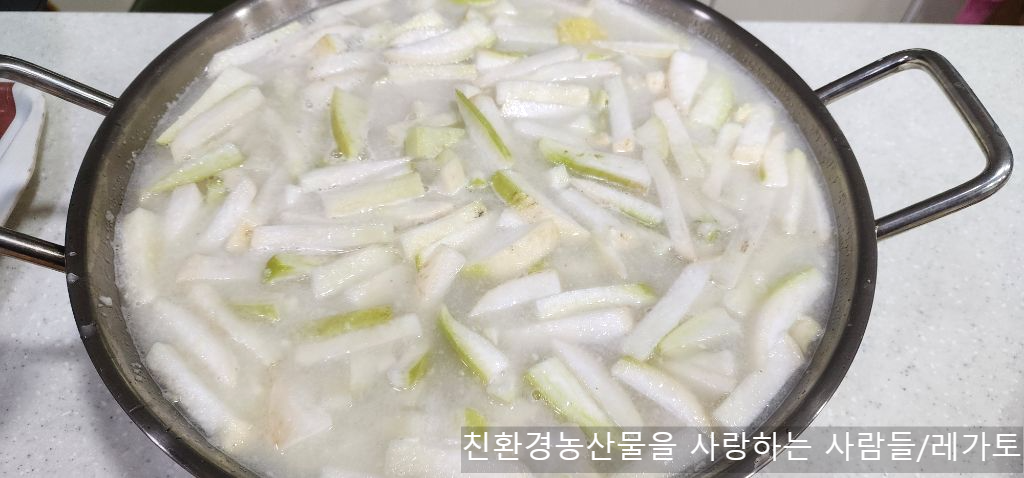 무 절이고 찹쌀풀 끓여 둔 다음날