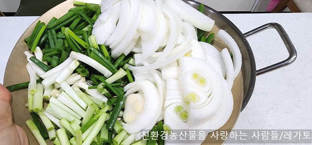 건홍고추, 쪽파, 양파 넣어 함께 섞어줍니다.