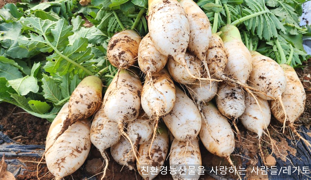 텃밭에서 무를 뽑아왔어요.