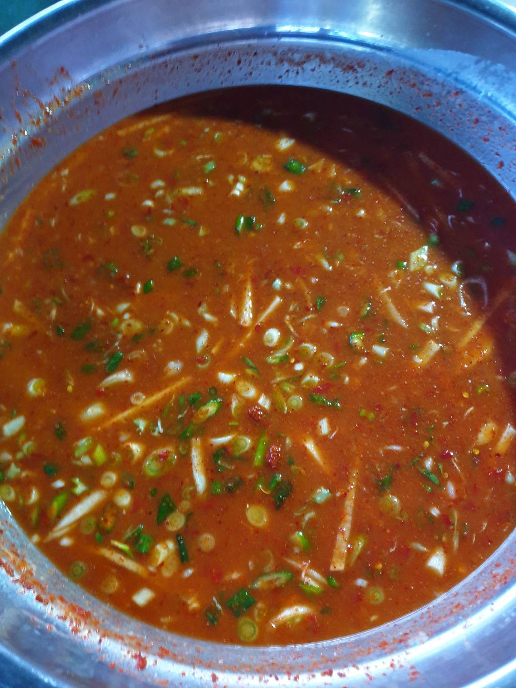 물고추 갈아넣어 준것 꺼내서 녹여서 했답니다 더시원 하네요.