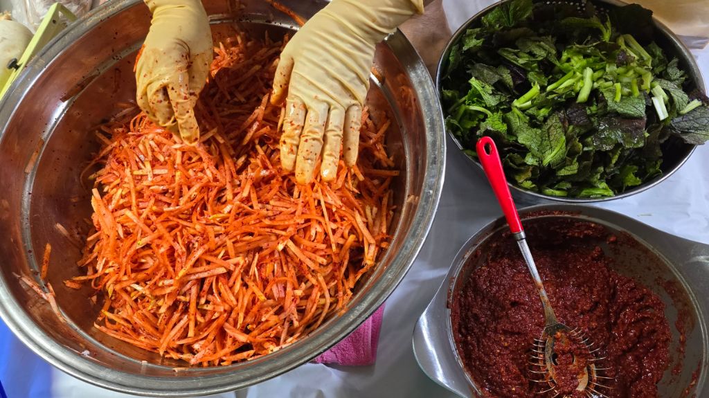 <배추소 만들기>~※경기도식 김장은 무우속을 많이 넣어 시원한게 특징 입니다. 젓갈로는 새우젓을 많이 사용하고 멸치 맑은액젓, 생새우나 생굴을 넣기도 합니다