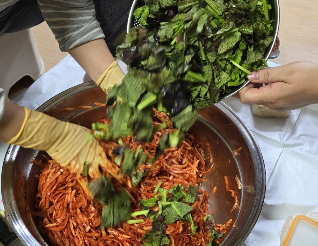 붉은 갓과 쪽파를 마지막에 넣어 섞는다