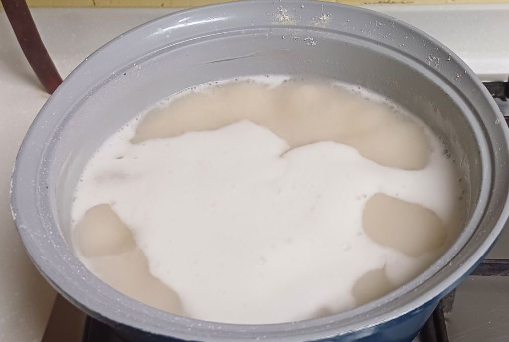 보리가루 풀국 끓여요