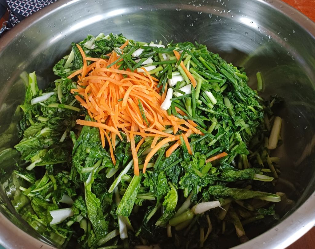 절여놓은 열무 씻어 건져 물기를 좀 빼주고요
